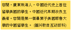 最早留美學生容閎 我們知道最早去美國留學的中國學生是容閎(Yung Wing)。但是他並不是第一位進美國學校的中國學生。在容閎之前,清嘉慶二十三年至道光五年間(1818年到1825年),有五名中國青年去美國求學。他們是中國第一批留學生,進入康奈狄科州的一所外國教會學校。其中一名廖亞喜成為最早在美國信仰基督教的中國人之一。另外一名亞隆學成歸國後擔任焚毀鴉片的兩廣總督林則徐的翻譯。他們比容閎去美國留學早了二、三十年。至於其他三名中國留學生的情形,或許在早期中國教會的史料中,可以找到紀錄。 容閎於清道光八年(1828年)生於珠海的一個貧窮家庭裡,跟父親到澳門謀生。十二歲時父親去世,他做小販幫助維持生計。他經鄰人介紹進入當地一家外國教會學校求學。因為這種關係,以及在校內學到的英文,他被選送入澳門馬禮遜學校。馬禮遜牧師是在1807年被英國聖公會派到澳門傳教的,教會建校,就以他的名字為校名。在校內容閎努力向學,功課很好,受到另一位從耶魯大學來的布朗牧師的注意。後來布朗牧師把容閎和另外兩名中國學生帶到美國,讓他們在麻省一間私立的孟松學校就讀,準備進大學。 美國友人幫助容閎半工半讀的完成耶魯大學的課程。清咸豐四年(1854年),他成為第一位從美國大學畢業的中國人。同年他回到中國,涉入政治。後來又和美國女子瑪莉凱洛琪結婚,並成為最早歸化美國為公民的華人之一。 容閎著有『西學東漸記』,介紹西洋的學術思想和文明社會的種種,對中國人有很大影響。他和早期來美的中國人不同,其他的人多想淘金發財,而他卻在追求知識。容閎逝世於1912年,享年八十四歲。 今日紐約曼哈頓有公立容閎小學,紀念容閎。 黃金引誘中國人過番 在十七世紀末,來自中國的移民想要歸化成為美加公民,似無多大困難,但是只有少數中國人歸化。大多數的中國人認為飄洋過海到美洲是為工作和賺錢;只有「樹高千丈,葉落歸根」的想法,沒有終老客地的念頭。當年他們一旦儲蓄了一筆錢,就想衣錦還鄉回「唐山」去,在老家度其晚年。就算不幸客死他鄉,他們也一定託人把骨灰運回中國,安葬在家鄉的墳地上,免得在番邦做孤魂野鬼。 可見在早期的來美國的中國人中,歸化美國,不想回去的人不多。在少數歸化美國的中國人中,有一個諾曼亞興(譯音)是舊金山早期的華人社區的領袖。但他是不是真有美國公民身分,未經文件證實。另有一個隨船服務的洪紐(譯音),1855年抵達賓州定居,1862年歸化成美國公民。但禁不住祖國在他內心的召喚, 1864年回中國做傳教士,據說成為上海著名的聖約翰大學的創辦人之一。 一直到十九世紀的中期,中國動亂加上黃金的誘惑才使得許多中國人肯離鄉背井的奔向美國。1848年,美國的西海岸山中發現黃金礦脈,這個消息很快的傳出去,一個月後,就有華人加入採金的狂潮,並立即把美國淘金可發大財的消息,傳回中國。大家聞之心動,紛紛想「過番」去新大陸淘金。就在1849年的一年中,加利福尼亞的人口從二萬人激增到十萬人,從美國東部和中西部,南美和歐洲來的白人和其他人種,成千上萬的到加利福尼亞去。自然在增加的人口中,中國人仍是占少數。 那一年,只有三百二十五名中國人,抵達美國西海岸;一年後又來了四百五十人。為什麼早期來美洲的中國人並不多?這和中國傳統的思想觀念有關。 天災人禍、異地求生 中國人的民族性是「安土重遷」,一般人對離開家鄉到海外去打天下,視為畏途。保守的心態認為出外謀生無論如何發財,不如在家裡苦熬日子。中國人不肯離鄉背井,是因為有家庭、宗教和傳統的束縛,牢固有力地把他們綁住在家鄉。再加上滿洲人入關統治,下令男人一律剃去前額頭髮,嚴格到「留髮不留頭」的地步。一般中國人到了外國還留著辮子,是怕留了前額的頭髮,剪了辮子,就回不了中國了。 明朝末年,朝廷無力保護沿海居民不受海盜騷擾,索性實施「海禁」,就是不准沿海人民向海外發展:未經官府核准,人民私自和外人來往,罪名不輕,嚴重的可能殺頭;更別提向海外移民。清朝初期怕明朝遺臣從海上反攻,不只嚴行「遷海令」,還不准造大船,-造雙桅三十噸以上的船就算犯法。這種禁令一直到清代中葉,十九世紀中期還起著阻遏作用。 十九世紀中期,滿清官吏貪污、軍隊跋扈,中國人口上升到三億。經濟的惡化,使人民生活越來越難過。同時,歐洲列強進入工業革命時代,實行帝國主義向外擴張;鴉片戰爭的大砲轟開閉關自守的中國大門之後,把中國當做一塊肥肉,任意分割。1851年至1864年的太平天國內亂蔓延數省,十四年後,才被壓制。白蓮教和捻子又鬧了許多年,使中國元氣大傷,滿清皇朝的基業發生動搖。 逃避內亂外患,是中國人向海外移民的主要原因。山東省和河北省的人民,向關外的東北移民,去朝鮮和日本謀生。浙江省的青田等縣的人民,一句外語也不會,居然遠走歐洲各國去做小生意,沿門推銷絲帶和抽紗織物,或開設餐館。福建和廣東兩省的人民,大量的向南洋移民。閩南人在菲律賓和印尼打開了天下,在星馬和廣東人平分秋色。廣東人則向中南半島求發展,越南、泰國和緬甸,都是廣東華僑。而在美洲,也是廣東沿海幾個縣的移民,開創了新大陸的華人事業。 意在謀生、別無他志 中國人移民美洲目的本來極為單純,不像美國人的祖先是為宗教、政治和經濟的複雜因素而